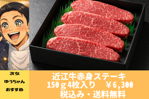 近江牛赤身ステーキ 150g4枚入り ¥6,300(送料込み価格)